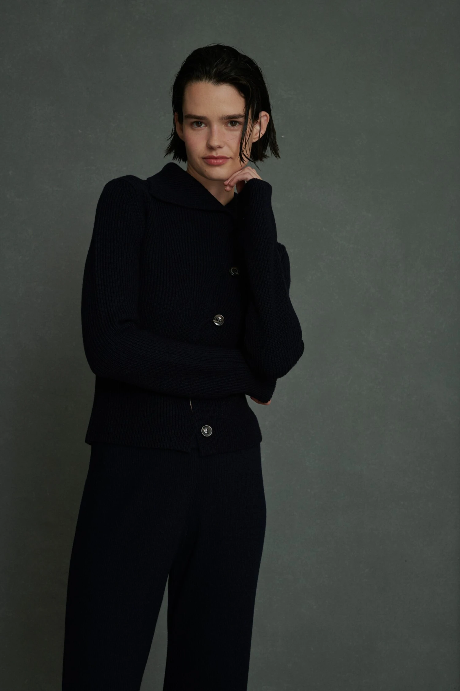 VIMY est un cardigan près du corps en maille côtelée. De nombreux boutons offrent un col modulable, à porter montant ou ouvert. Il peut être porté en cardigan à même la peau ou en superposition comme une veste fine. Il fait partie de notre ligne brodée du monogramme « S ». Cette version est en laine mérinos fine et chaude.