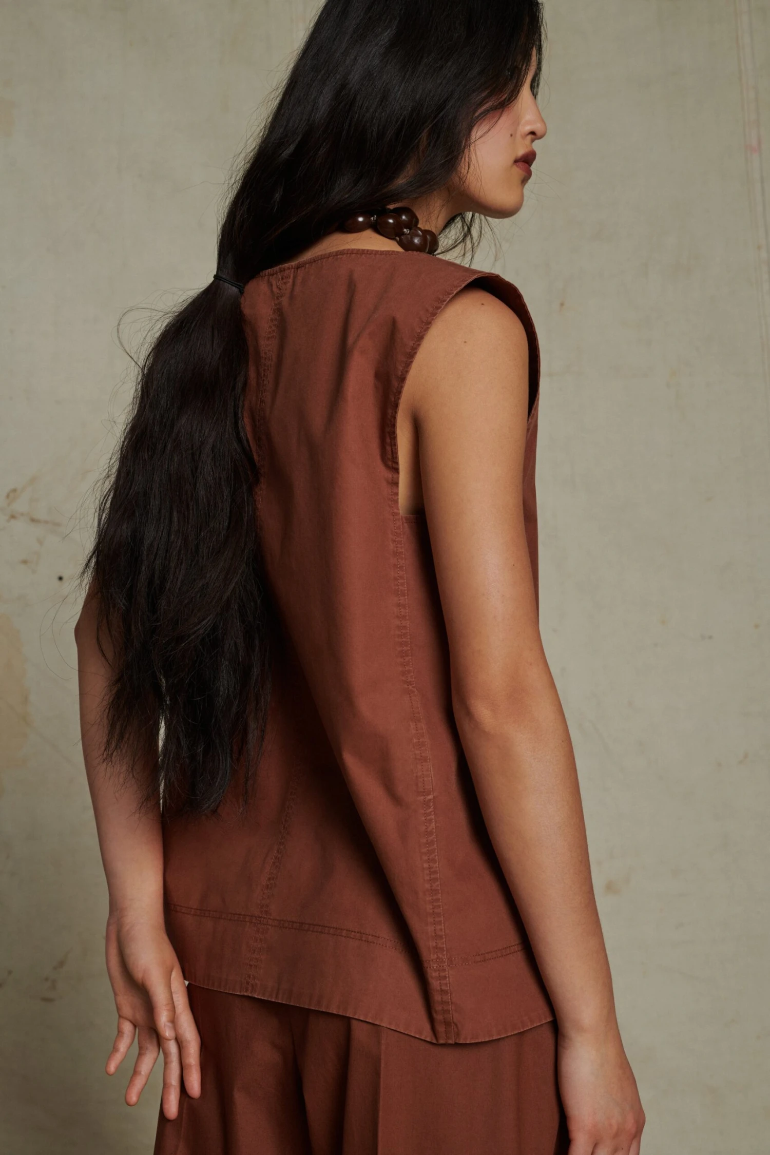 AARON est un top aux lignes épurées soulignées par un jeu de surpiqûres. L’emmanchure carrée et les fentes aux côtés ajoutent à son volume trapèze. La popeline de coton, légère et fraiche, est idéale pour l’été. A associer au pantalon WATSON pour constituer un total look d’été monochrome.