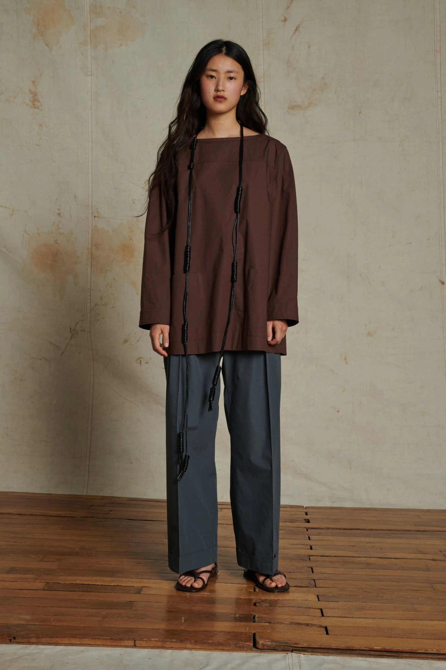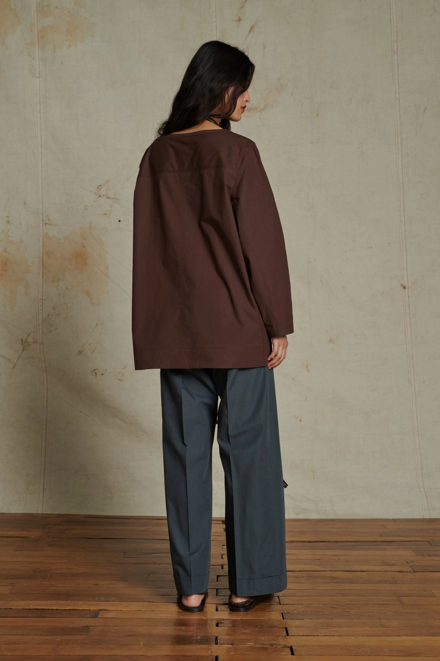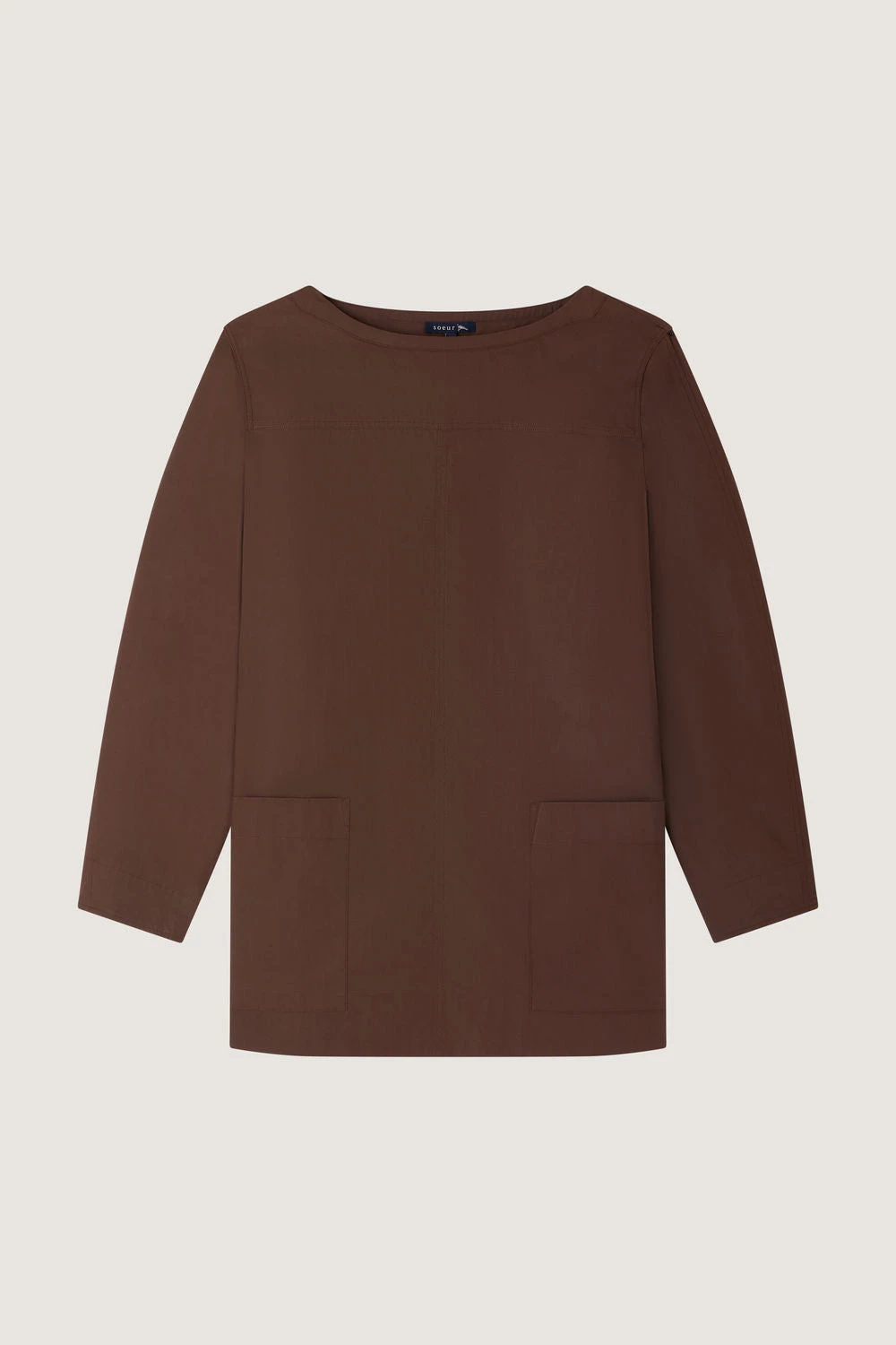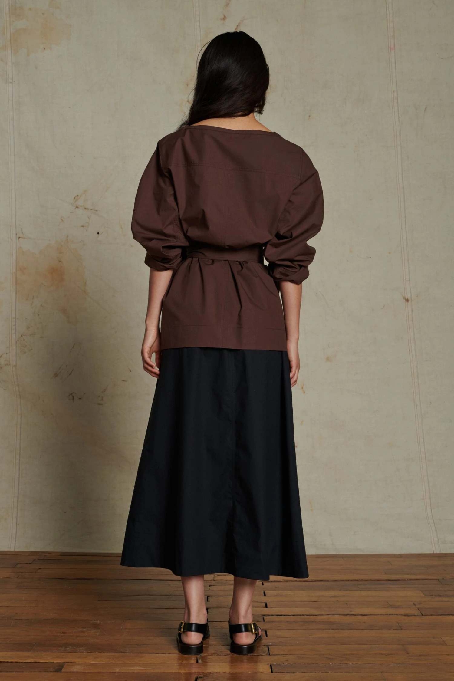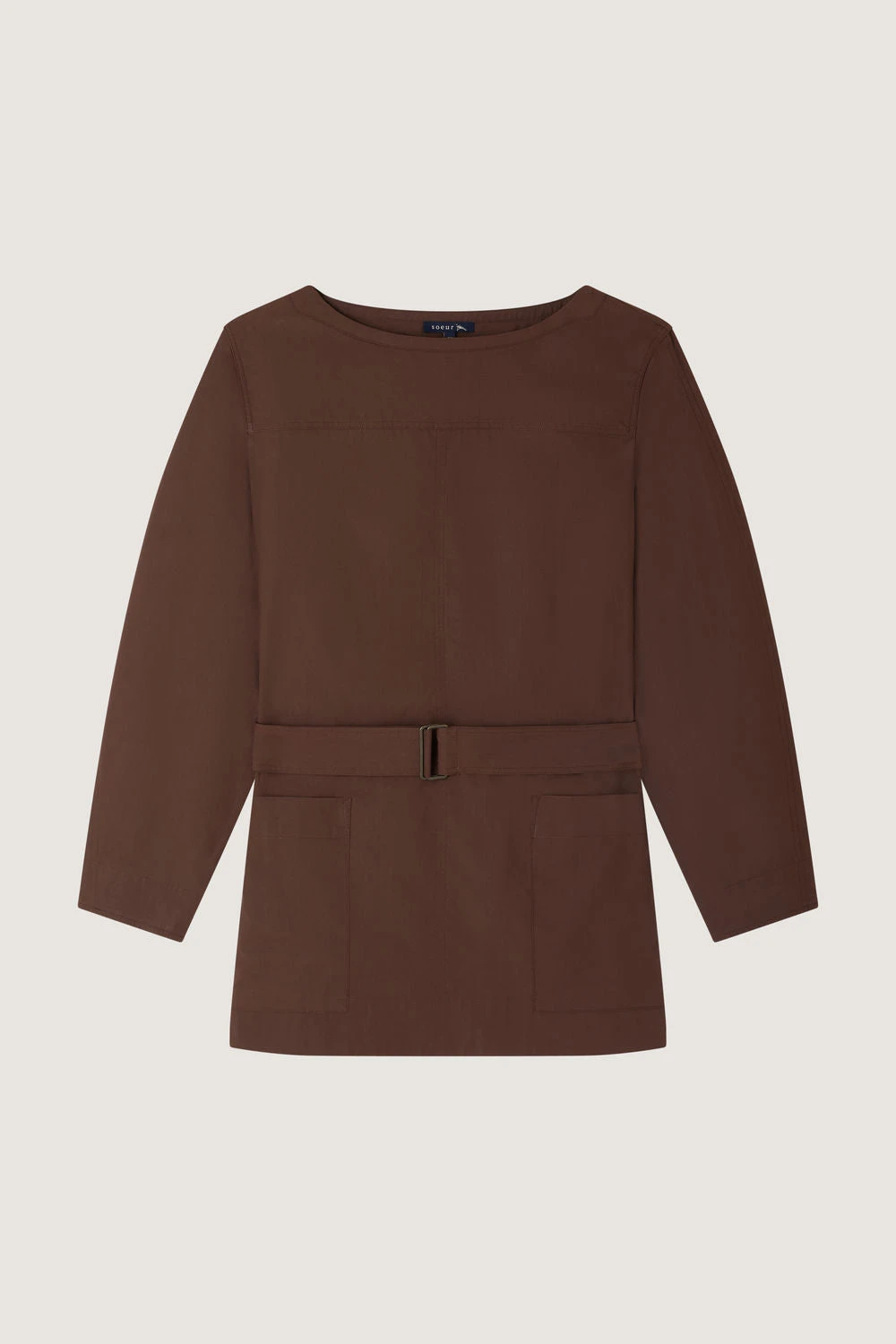 Blouse Ă ceinture amovible en popeline de coton chocolat