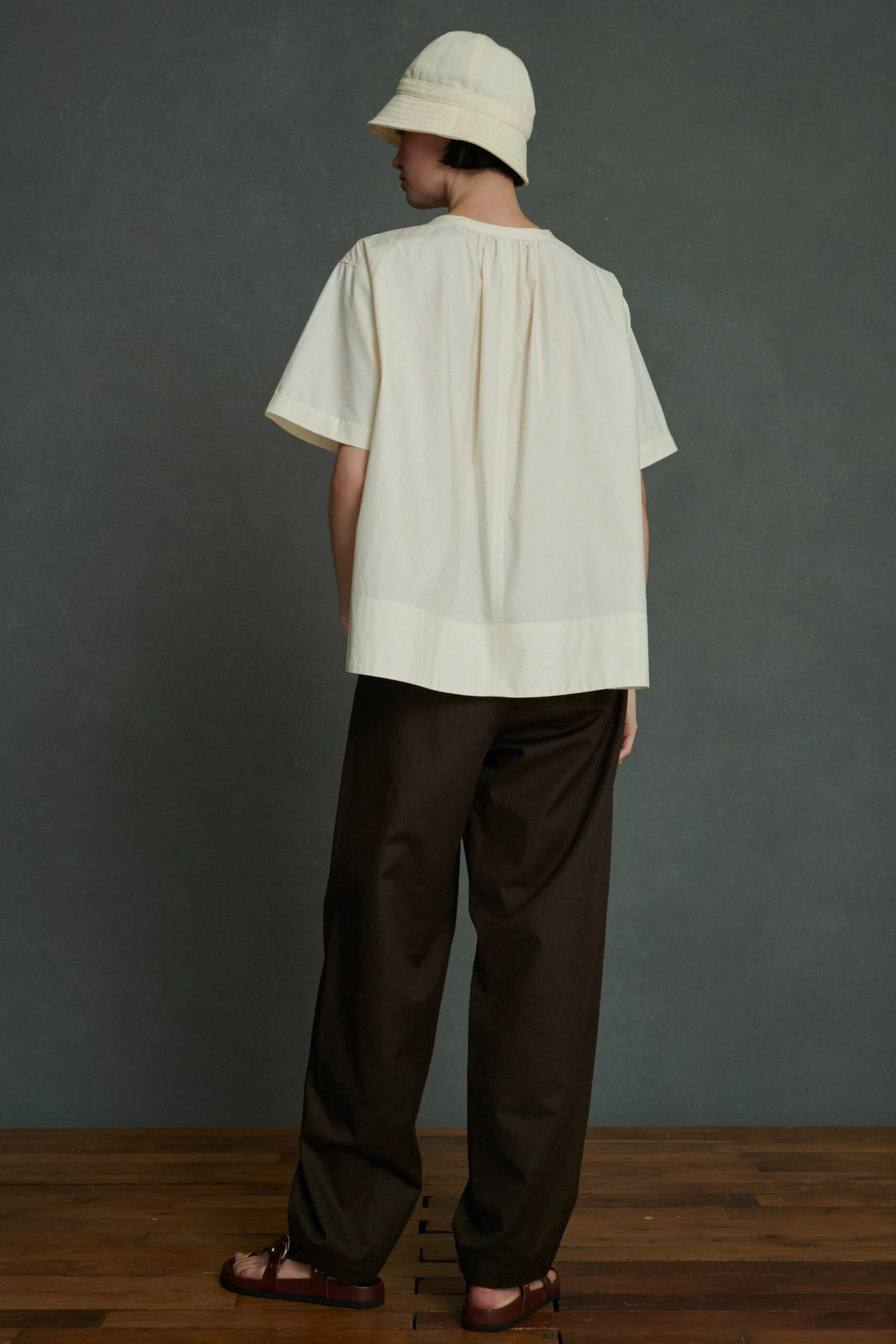 ARLETTE est une blouse ample en coton. L’encolure ronde, entièrement froncĂ©e, est fendue, se portant ouverte ou boutonnĂ©e. La popeline de coton, lĂ©gère et fraiche, est idĂ©ale pour l’Ă©tĂ©. Le bas de corps, les manches et le plastron sont doublĂ©s, crĂ©ant un jeu de transparence contrastĂ©.