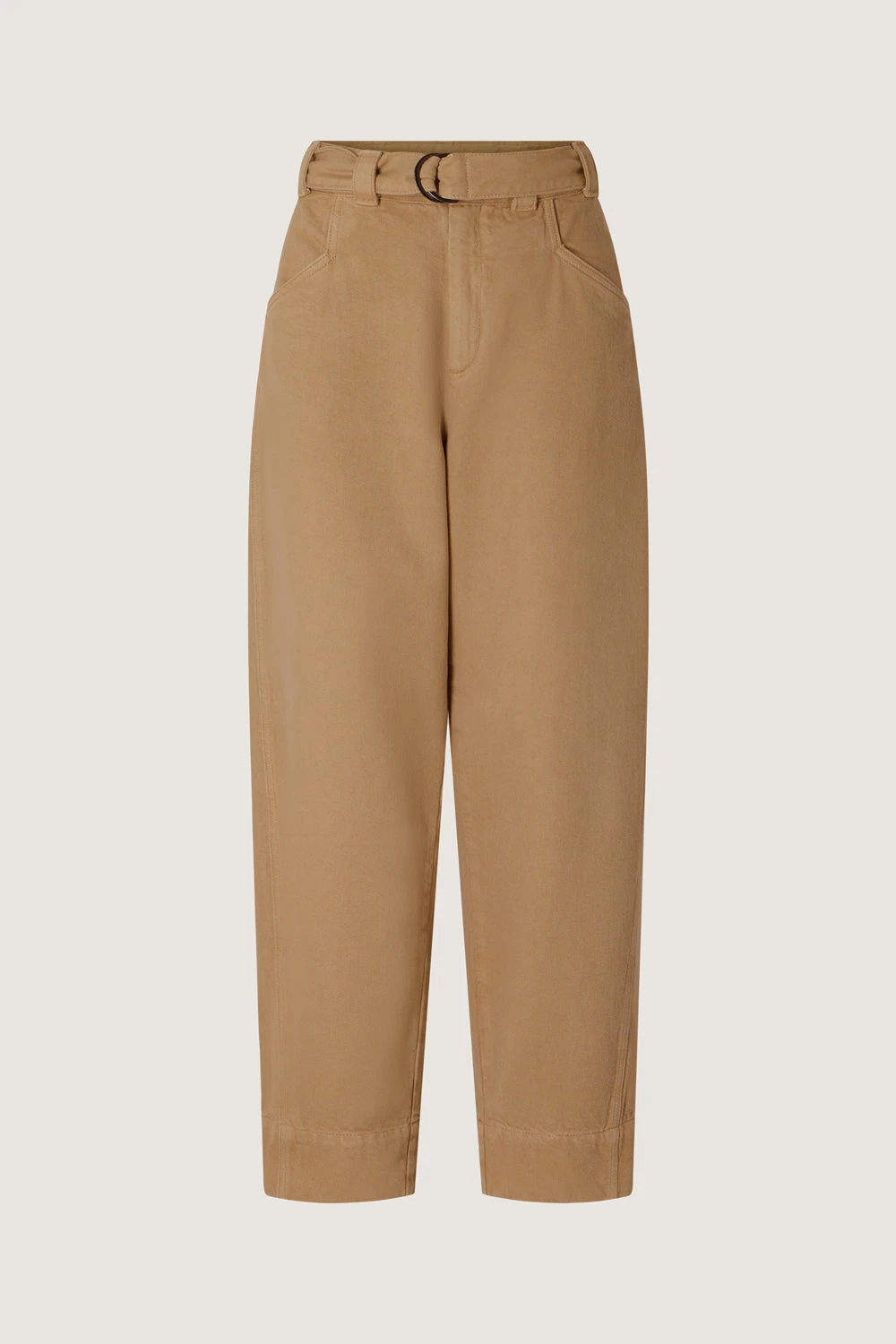 Pantalon taille haute ceinturé en denim souple beige