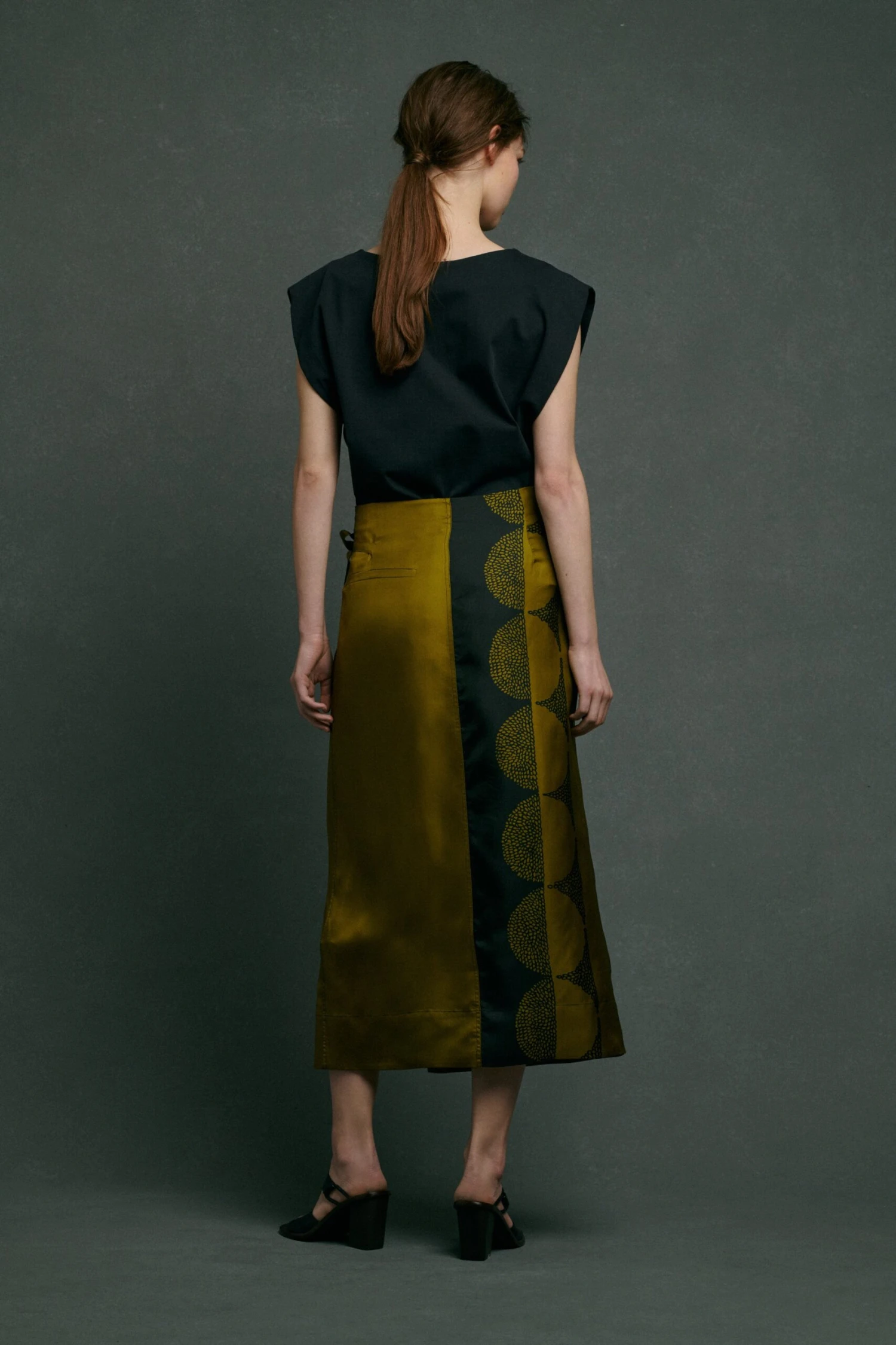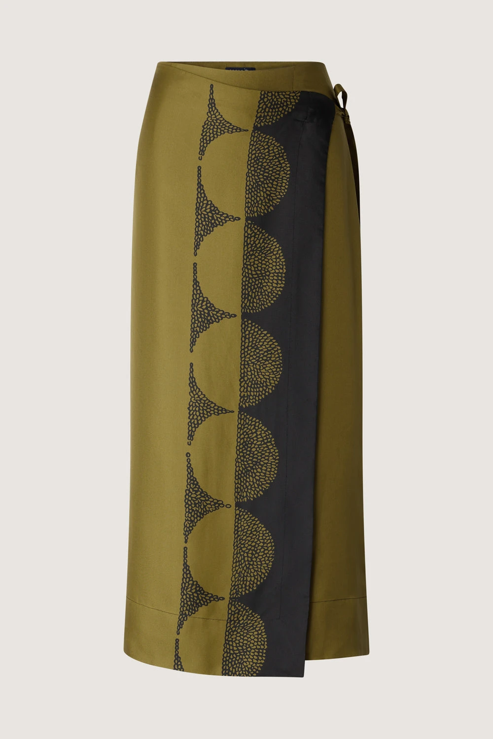 Jupe portefeuille mi-longue en twill de soie imprimé « Pochoir »