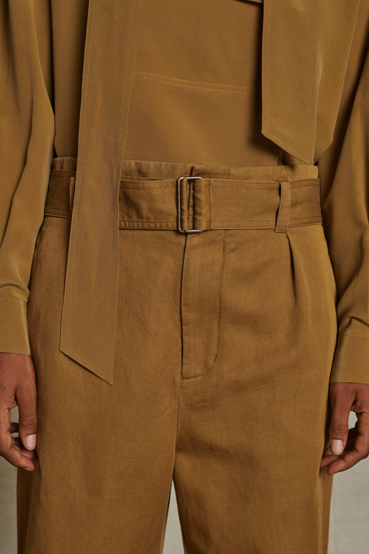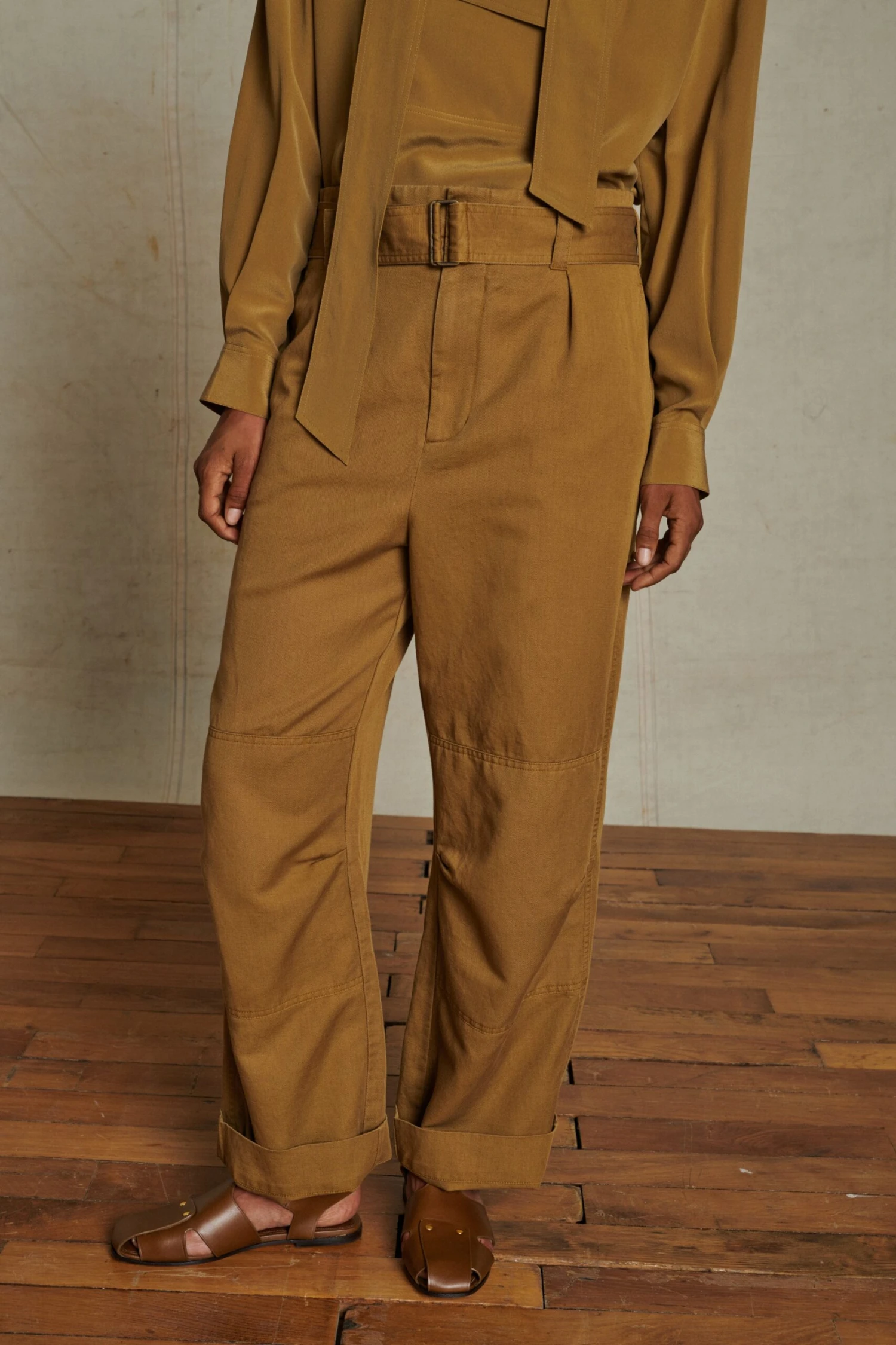 Pantalon inspiration « cargo » en toile de coton et lin souple